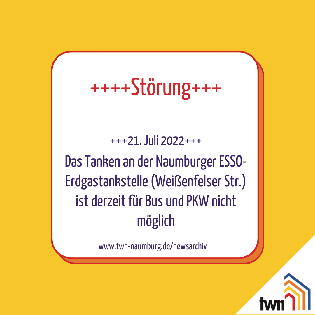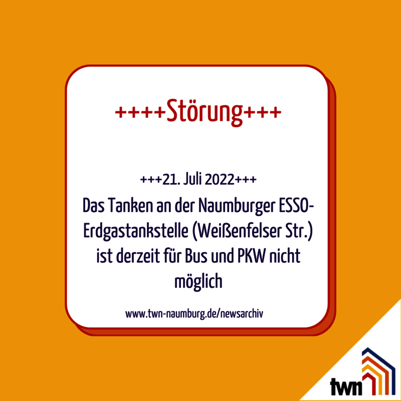 Achtung! 21.Juli 2022 bis voraussichtlich 25. Juli 2022 , Erdgastankstelle vorübergehend außer Betrieb
