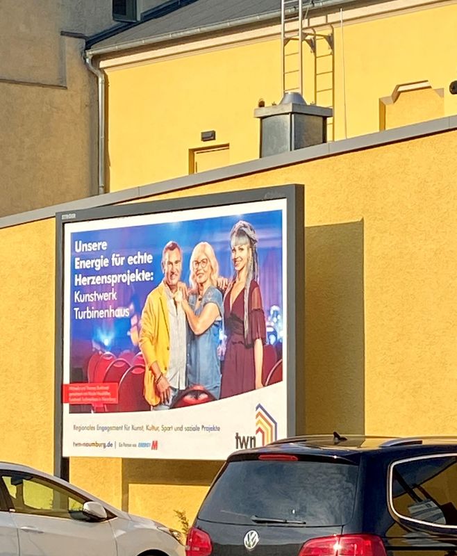 Die großen Plakate an vielen Naumburger Straßen und Plätzen. Wir unterstützen gern echte Herzensprojekte, wie das Kunstwerk Turbinenhaus der Familie Burkhardt.