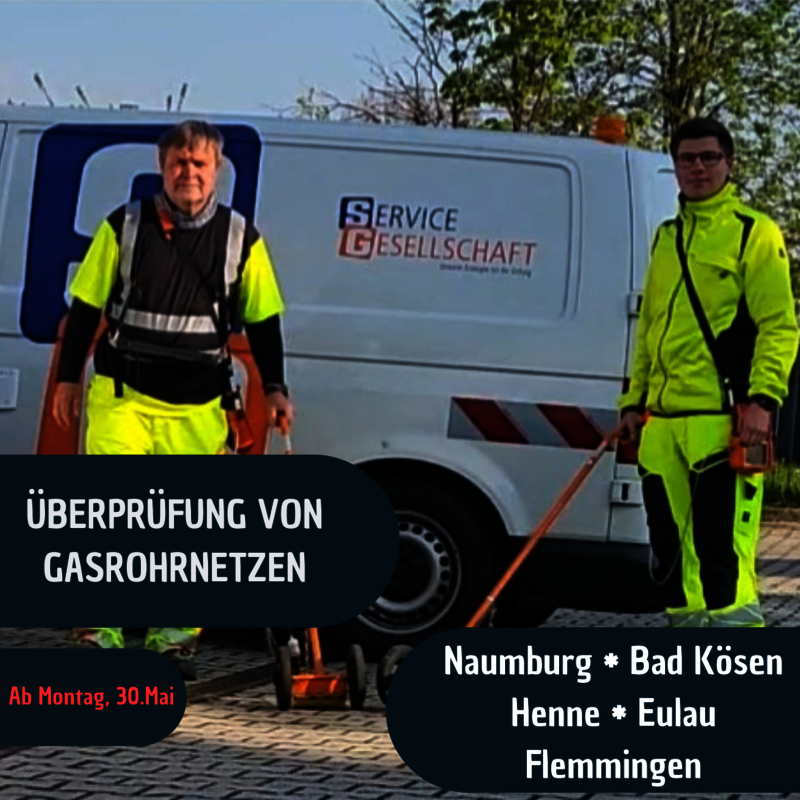 Die Technische Werke Naumburg GmbH (TWN) führt seit Mai 2023 die jährlichen Gasrohrnetzüberprüfungen in Naumburg und in den Ortsteilen Bad Kösen, Flemmingen, Henne und Eulau durch.