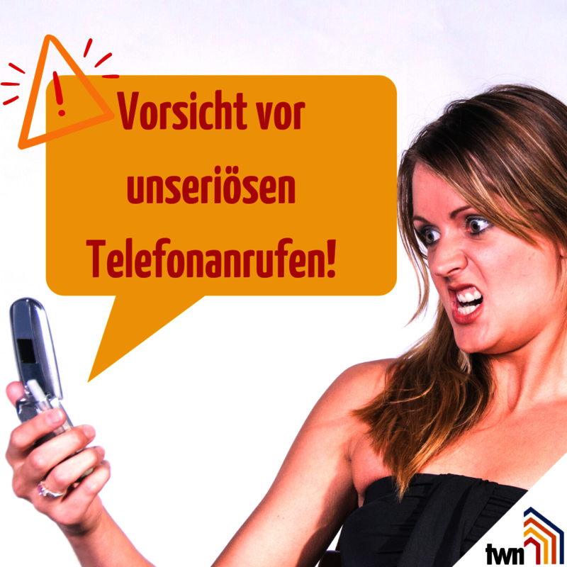 Verstärkt berichten derzeit Kunden, dass sie von angeblichen Mitarbeitern der TWN angerufen werden. Die Anrufer mit einer Berliner Vorwahl wie z.B. 03025546138 geben sich am Telefon als örtlicher Energieanbieter aus. Es wird behauptet, im Auftrag der TWN zu handeln und mit TWN zusammenzuarbeiten.