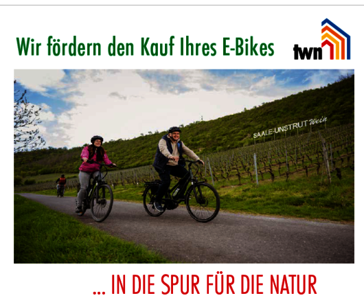 Deshalb fördert die TWN den Kauf Ihres E-Bikes mit 50 €. Voraussetzung ist, dass Sie Stromkunde in einem Sonderstromvertrag bei TWN mit einem Mindestjahresverbrauch von 500 Kilowattstunden pro Jahr sind und Ihr E-Bike bei einem der Naumburger Fahrradhändler erworben haben (Ausnahmen im Einzelfall möglich).