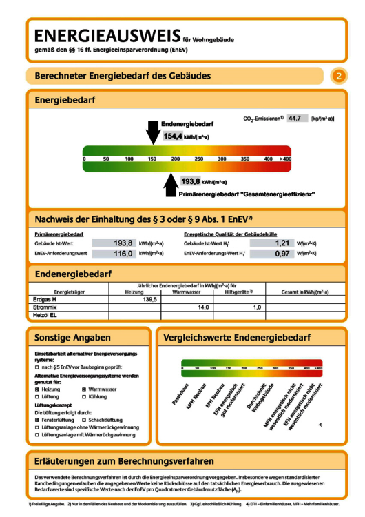 Verbrauchsorientierter Energieausweis für Wohngebäude